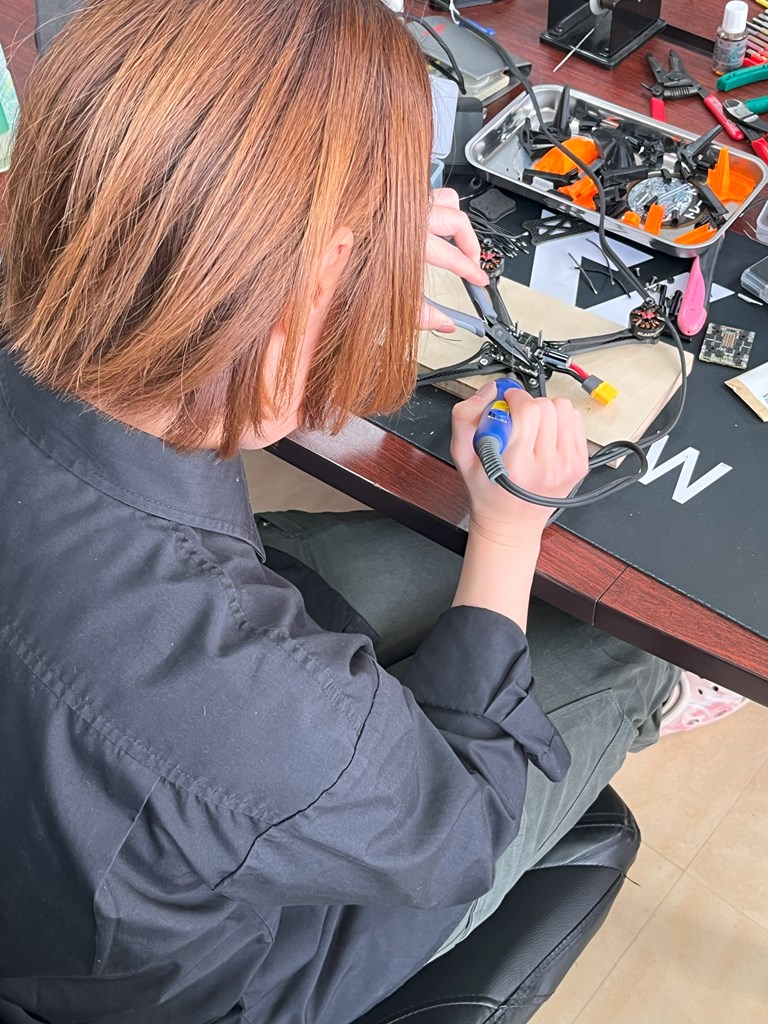 事務スタッフも組み立ての見学をしてはんだ付けの練習をしたり、SKY-VIEWでは社員全員でドローンについて学んでいます!